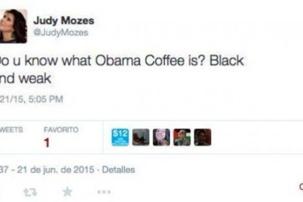 Judy Mozes, que es como se llama esta mujer, es periodista, una destacada presentadora de radio en Israel, publicó un chiste que dice: "¿Sabes a qué llaman un 'Café Obama'? Pues a uno que sea negro y flojo". Aquí lo tienes.