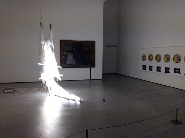 Así hasta la última sala, donde dialogan tres obras muy diferentes: por un lado, El Buey, de Bernardí Roig, "desde cuya barriga se despeñan tubos fluorescentes como edificios caído; vísceras que algún día emitieron luz y ya no", explica Mallo en la sinopsis de la exposición. Luego también están los ocho platos de cerámica de Picasso [Platos Toreo], "con sus ocho fases de una corrida de toros que son ocho fases del proceso celular: lo que media entre la vida y la muerte". Y por último, lo más inquietante, lo más diferente, lo que uno no se espera allí, "el visionario y premonitorio cuadro pintado por Pilar Montaner de Sureda en 1910 [Esperando a los novios], en el que dos mujeres casi idénticas acaso como dos torres gemelas, esperaban ya, pacientes, sumisas, en la puerta de su casa, el novio que, ahora lo sabemos, nunca llegaría". Y entre las tres obras, siempre presente la hecatombe del 11-S, el verdadero paso al siglo XXI, que para Mallo representa una ruptura, el final de un modo de entender la duplicación que estuvo presente desde el XIX, la caída del símbolo más importante de esa duplicación.