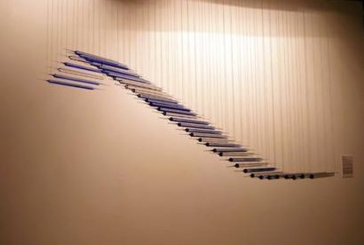 Y entre tanta potencia política y discursiva, destacan, por diferentes las obras de dos autoras, Chourouk Hriech, nacida en Marsella en 1977, y Laura Fluxà, mallorquina (1985). La primera, con una obra titulada Déspasser les murs (2015), donde se suceden varios dibujos que mezclan formas, objetos y lugares que evocan el mar y sus barcos, pero que se yuxtaponen otros elementos, como puertos o vegetaciones, sugiriendo que es difícil poner bordes a las experiencia, y que todo es más bien continuum donde los objetos se relacionan y se evocan los unos a los otros. Por otro lado, Fluxà ha construido una delicada obra, A-Nivellements, donde se suceden tubos de cristal de color azul sustentados sobre hilos y colocados de tal manera que evocan las sinuosidades del mar, al mismo tiempo que reflejan los delicados equilibrios de este espacio natural que está en permanente transformación.