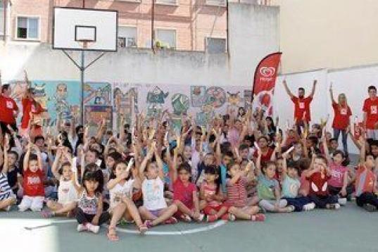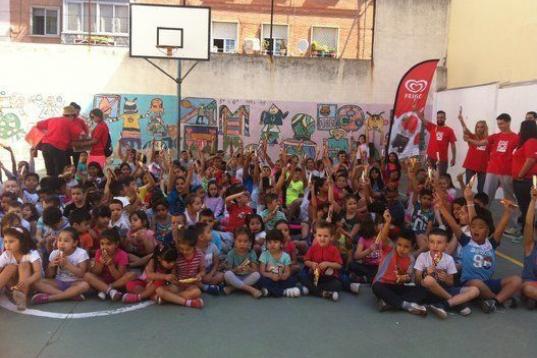 Al acabar la charla, los chavales corren a las canchas de baloncesto. Allí, sentados todos juntos y mezclados por cursos, escuchan atentamente a las instrucciones de los animadores. Saludan contentos y emocionados a la prensa: “¡Mira tío la tele, di hola!”. Las chicas posan para las fotos muy coquetas. El director, Javier Huarte de Goñi, agradece a la marca de helados su colaboración para celebrar la fiesta: “Es un colegio muy multiétnico donde hay muchas diferencias a nivel económico. Este tipo de iniciativas de las empresas nos vienen muy bien y estamos muy agradecidos.”, explica mirando a sus alumnos, ilusionado y sonriente.