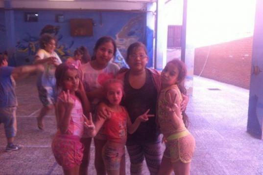 Unas chicas de sexto de primaria miman a otra que es varios años menor y piden una foto: “Lo estamos pasando genial, encima nos hemos llevado helados gratis. Ahora toca la fiesta del agua, y tenemos muchas ganas”, explican.