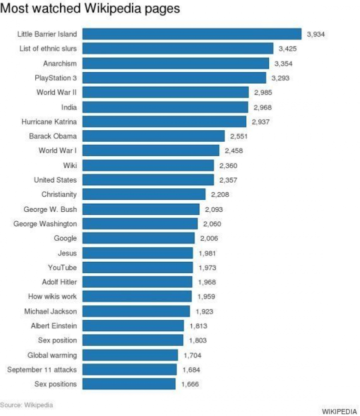 Por otro lado, la web también ha publicado las páginas más visitadas en todo el mundo, entre las que se encuentran los términos 'anarquismo', 'Barack Obama', o 'posiciones sexuales'.