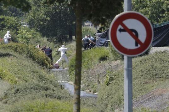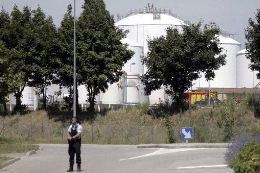 La cabeza del asesinado ha aparecido en la valla que rodea la instalación, de la firma Air Products, y estaba envuelta en una bandera con inscripciones en árabe, añade AFP. Aún no se ha traducido esas frases.