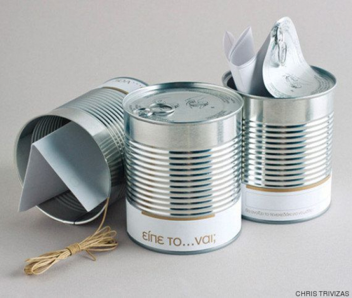 3. Además de llegar en un envase original, esta invitación de boda ideada por el griego Chris Trivizas respeta ciertas tradiciones. La lata se puede atar al coche nupcial al final de la ceremonia.