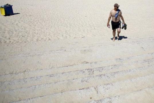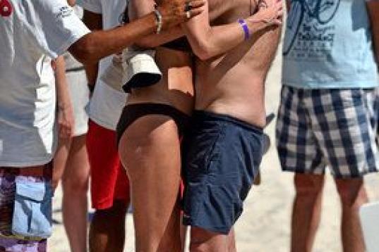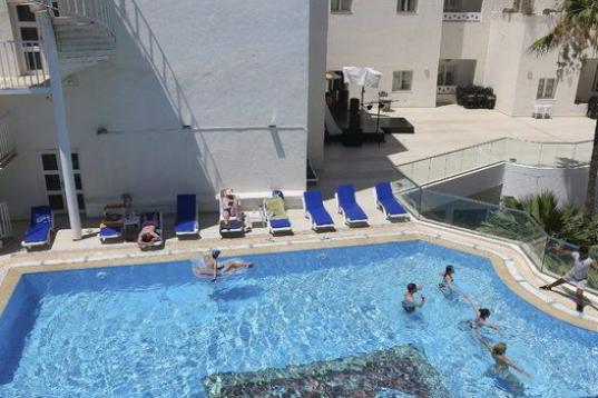 Turistas tostándose al sol al ritmo de la música occidental y las actividades programadas por la dirección tunecina, como el aeróbic acuático, en marcha.