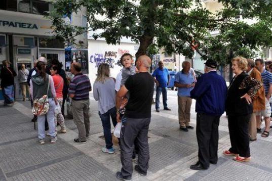 En un barrio a las afueras de la ciudad, hay cuatro cajeros seguidos con más de seis personas esperando a sacar dinero. Muchos de ellos se niegan a hablar con la prensa. Una mujer, de mala gana, dice que ella sólo va a sacar su sueldo, como hace cada mes: "No vengo a sacar todos mis ahorros, si es lo que piensas", espeta a El Huffington Post. Unos metros más adelante, esperando en la puerta de otro banco, están Lino y Tasos, de 21 y 22 años. "Venimos a sacar un poco de dinero porque es domingo, si pasa algo grave mañana sacaremos más. Creo que es imposible que cierren los bancos", dice Tasos, "en la prensa es que son muy alarmistas". Lino, en cambio, no parece tan convencido, no sabe lo que pasará, pero asegura que no tienen miedo.