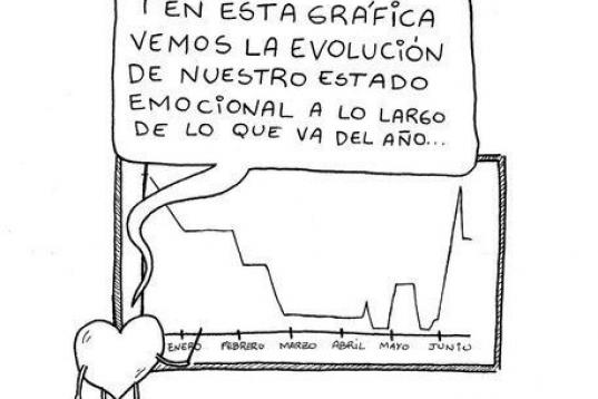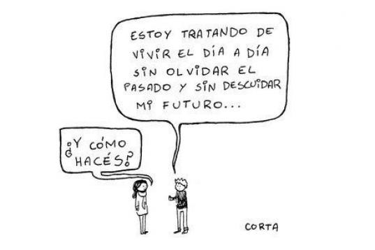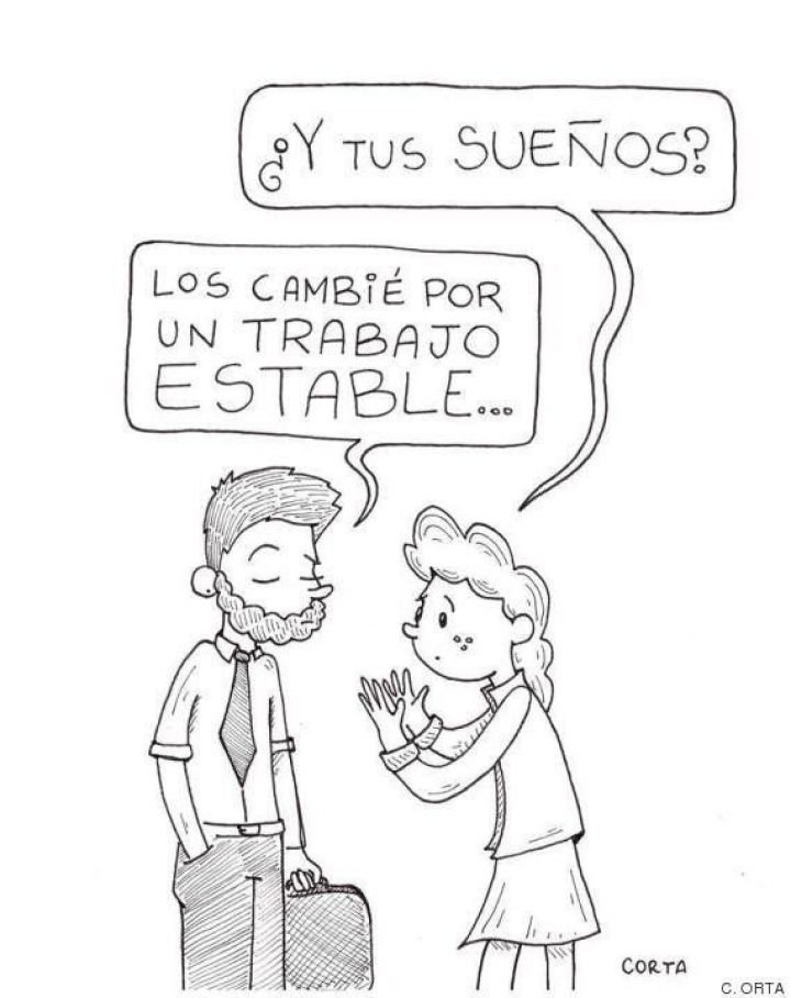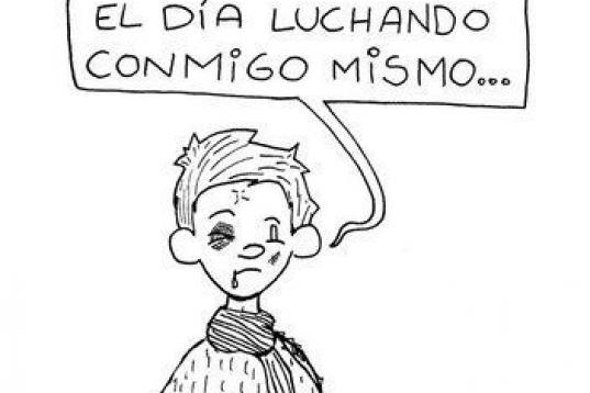 Aunque en una de sus viñetas ironiza con la idea de vivir una crisis existencial para impulsar la inspiración creativa, sí defiende que los cambios vitales bruscos son los que activan la imaginación. "Cuando estamos con estados emocionales elevados, sea para bien o para mal, ya sea si estamos extremadamente felices o medio deprimidos, entramos en pequeños momentos de gran introversión en los cuales nos detenemos mucho a pensar a qué se deben esas emociones y por qué se generan", explica. Así es como surgen sus dibujos, en los que prefiere limitarse al blanco y negro.