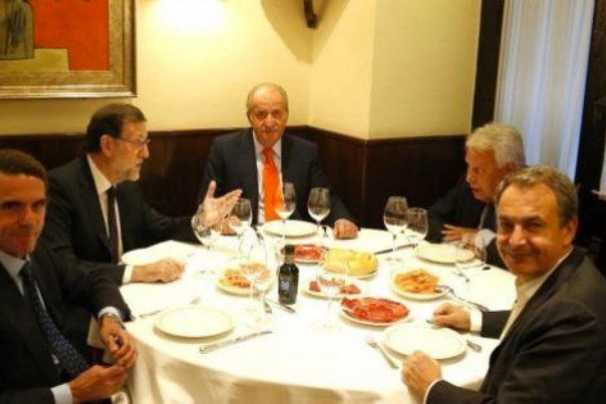 Mariano Rajoy, José María Aznar, Felipe González y José Luis Rodríguez Zapatero han compartido mesa con Juan Carlos I en el comedor del restaurante, rodeados del resto de clientes, como si fueran íntimos amigos y accediendo a saludar y a hacerse fotografías con el resto de comensales del local que se han acercado a la mesa, según ha explicado Lucio.