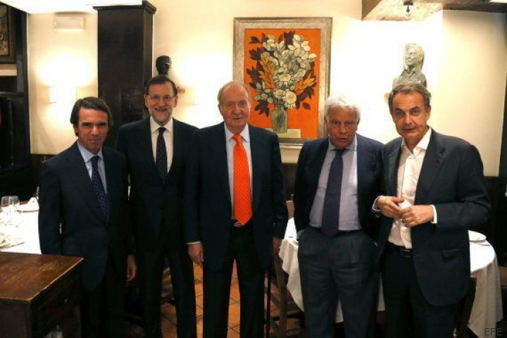 Rajoy, de cena con el rey Juan Carlos y los expresidentes del Gobierno