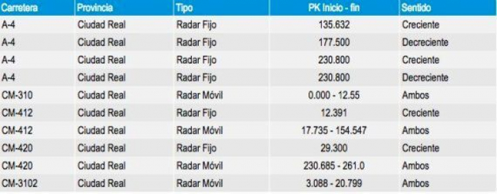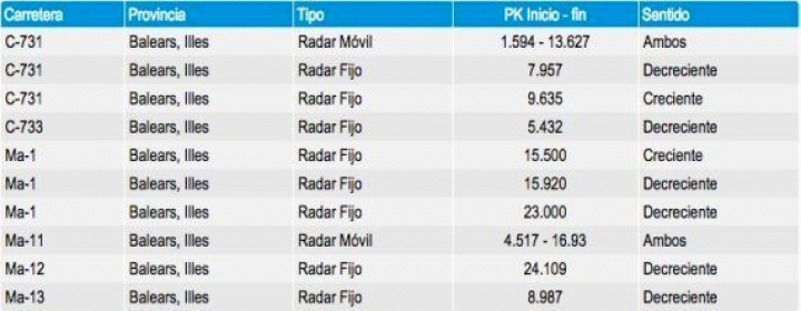 El Ministerio del Interior, del que depende la DGT, ha explicado que la decisión de publicarlos obedece a la intención de que los conductores "extremen las medidas de precaución" al pasar por ellos y "sobre todo cumplan con los límites de velocidad establecidos en cada uno de ellos". De muchos de los radares publicados no es posible saber la ubicación exacta dentro de cada tramo, ya que serán los agentes quienes tomen esa decisión.