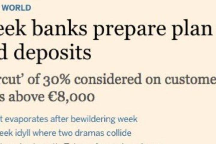 El diario británico había avanzado que las autoridades bancarias estaban estudiando la posibilidad de confiscar, concretamente, hasta un 30% de los depósitos superiores a 8.000 euros. Ello sucedería en "el contexto de una reestructuración completa del sector bancario una vez que Grecia regresara al programa de rescate, previo supuesto acuerdo entre las autoridades griegas y sus acreedores.