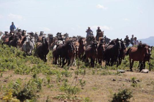 Los hombres, y apenas alguna mujer, reúnen a un importante número de caballos salvajes, que pastan y pasean en libertad durante todo el año, y, una vez en el lugar llamado curro, se produce ese mano a mano tan espectacular entre los aloitadores, los humanos, y los caballos. Todo, con el fin de raparles las crines y marcarlos a fuego, un seguimiento que se hace cada verano. Esta carrera tras los animales se desarrolla en una zona de 45 kilómetros cuadrados de naturaleza esplendorosa, verde y rocosa.