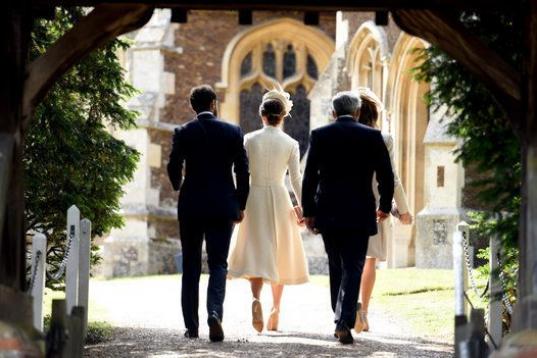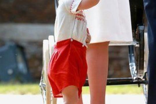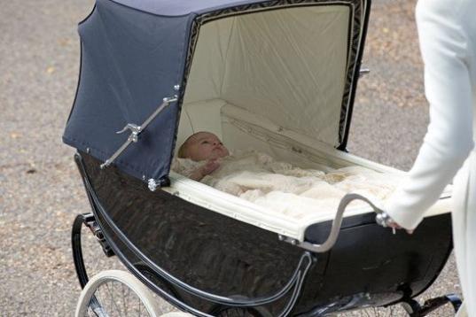La pequeña, cuarta en la línea de sucesión al trono británico, llegó a la iglesia, donde también fue bautizada su fallecida abuela en 1961, en un cochecito de bebé clásico empujado por su madre, quien lucía un traje de color marfil de la firma de Alexander McQueen y un sombrero a juego de Jane Taylor.