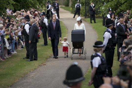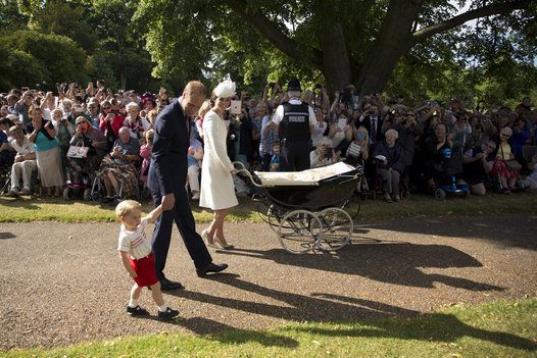 Para regocijo de los muchos curiosos que esperaron su llegada durante un día soleado en una zona verde habilitada frente a la capilla, esta fue la primera ocasión que los duques de Cambridge aparecieron en público junto a Carlota y su hermano mayor, el príncipe Jorge, nacido en 2013.