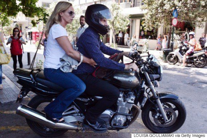 Varoufakis lleva en moto a su mujer tras anunciar su dimisión / GETTY