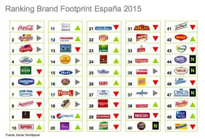En cuanto al peso de los fabricantes por número de marcas en el ránking, destaca el peso de Danone, con 7 enseñas entre las 50 más consumidas, Nestlé (7); Coca-Cola (3); Campofrío (4); y Unilever (2).