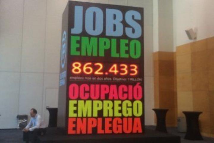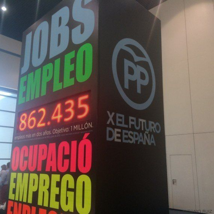 En el cónclave que celebran en Madrid han colocado un contador con el número de empleos creados en los dos últimos años: 862.145. Junto a esta cifra se recuerda que el objetivo marcado por Moncloa es el de un millón de puestos de trabajo entre 2014 y 2015.