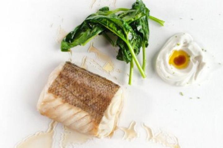 Sencillo. Sin complicarse. Un pescado como el bacalao, la merluza o la dorada, es decir, los magros o blancos, puede ser el segundo ideal. Domínguez recomienda echarle un chorrito de aceite de oliva en el plato y servirlo sencillamente con una ensalada de espinacas aliñada con vinagre de jerez y acompañada de unos cacahuetes tostados. Para los que sean de acompañar con salsas, una de romesco puede ser la opción. Se prepara con almendras, avellanas, ajo, tomate, aceite de oliva y pan remojado en vinagre.