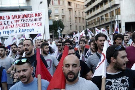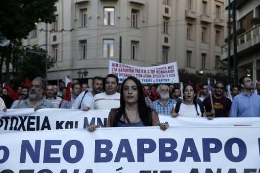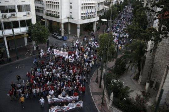 Miles de personas se han manifestado este miércoles en el centro de Atenas para protestar contra el paquete de medidas acordado entre el Gobierno griego y los acreedores, el mismo día en que el Parlamento debate su aprobación.