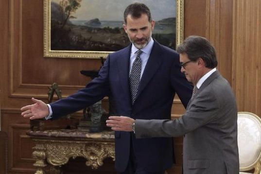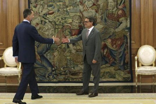 El presidente de la Generalitat, Artur Mas, y el rey Felipe VI se reunen este viernes en el Palacio de la Zarzuela tres días después de que el mandatario catalán haya pactado una lista y un plan soberanista con el líder de ERC, Oriol Junqueras.