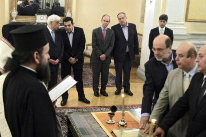 Ante la presencia del presidente de la República, Prokopis Pavlópulos, y de Tsipras, los nuevos ministros, viceministros y ministros adjuntos asumieron el cargo en dos procedimientos.