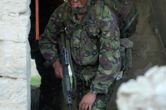 Probando armas en un entrenamiento militar durante una visita a Australia.