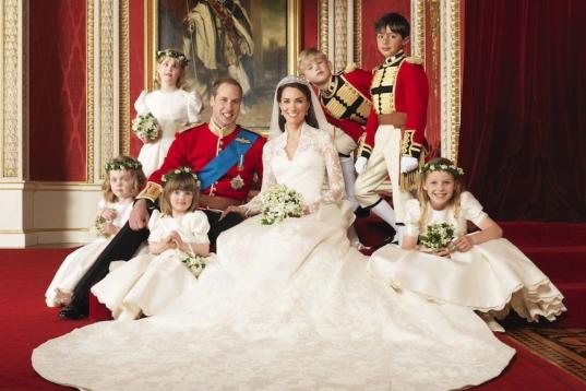 Con los niños que les acompañaron en el enlace. Más de 16 millones de personas siguieron el enlace por televisión en España.