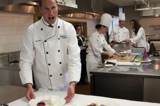 Durante una visita oficial a Montreal, el duque de Cambridge ayudando en la cocina de un instituto de turismo.