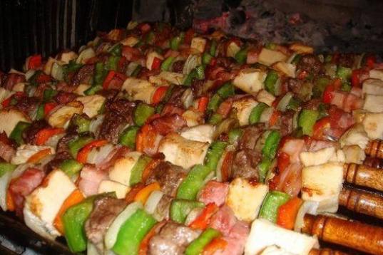 Las brochetas de pollo, lomo de ternera, panceta y vegetales son muy fáciles de hacer y resultan deliciosas.