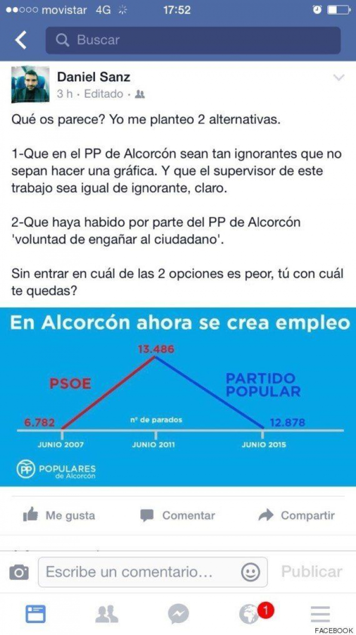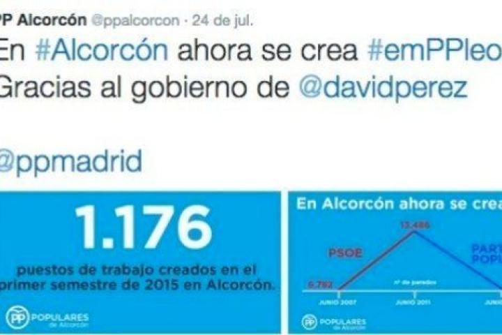 El PP de Alcorcón publica una polémica gráfica del paro