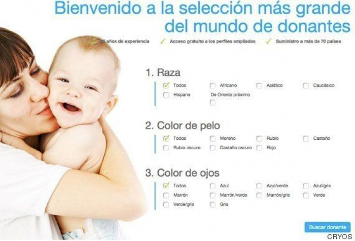 La empresa danesa 'Cryos', uno de los bancos de esperma más grandes y reputados de Europa, permite seleccionar todas y cada una de las características físicas del donante (altura, peso, edad, origen, color de pelo y ojos...), así como otras más avanzadas relativas a su nivel de estudios y rasgos de personalidad, habilitando tanto un perfil personal como un archivo de voz en el que se le puede escuchar. Cualquier persona puede entrar en la web y realizar su pedido a domicilio para probar suerte. Al día siguiente, alguien llamará a su puerta con un tanque de nitrógeno que contendrá el esperma perfectamente conservado y listo para que la mujer proceda a inseminarse en la intimidad con un aplicador.