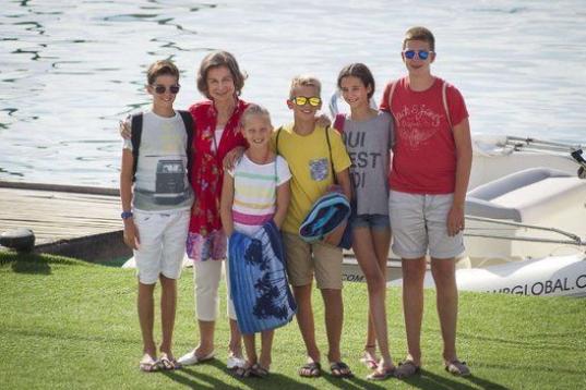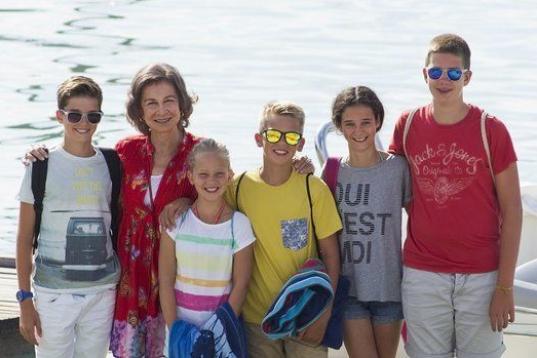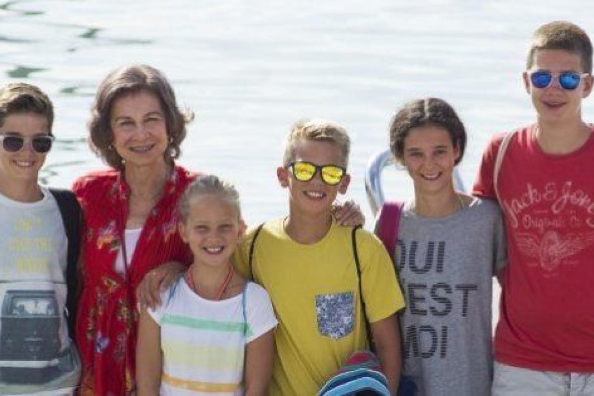 La real abuela se ha fotografiado con cinco de sus ocho nietos: Victoria Federica Marichalar Borbón y Juan Valentín, Pablo Nicolás, Miguel, e Irene Urdangarín Borbón. En el posado faltaban la princesa Leonor y la infanta Sofía, las hijas de los reyes (se supone que Felipe, Letizia y sus hijas llegarán a la isla a finales de la semana), y también el nieto mayor, el siempre polémico Felipe Juan Froilán, hijo de la infanta Elena, que cumplió 17 años la pasada semana.