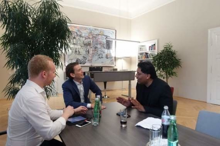 Desde hace año y medio, Sebastian Kurz es el ministro de Asuntos Exteriores de Austria. Viaja en avión por todo el mundo. Se reúne con jefes de Estado como el presidente de los Estados Unidos, Barack Obama, o la canciller alemana, Angela Merkel, y con sus ministros de Asuntos Exteriores, John Kerry o Frank-Walter Steinmeier.