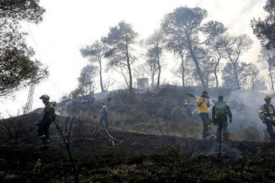 Una veintena de dotaciones terrestres han trabajado toda la noche con el fin de repasar el perímetro del incendio después de que los aéreos se retiraran al caer la noche.