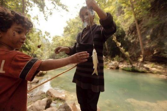 El suelo cercano a la casa de la familia está cubierto de polvo de carbón. Un pequeño fuego para cocinar calienta al lado de un tendedero. El saneamiento parece básico. Los niños parecen sucios y polvorientos, pero que muy pronto esa estampa cambia cuando salen del río, después de nadar. Allí pescan con una varilla hecha de un palo de bambú. Es casi el único alimento que tienen.
