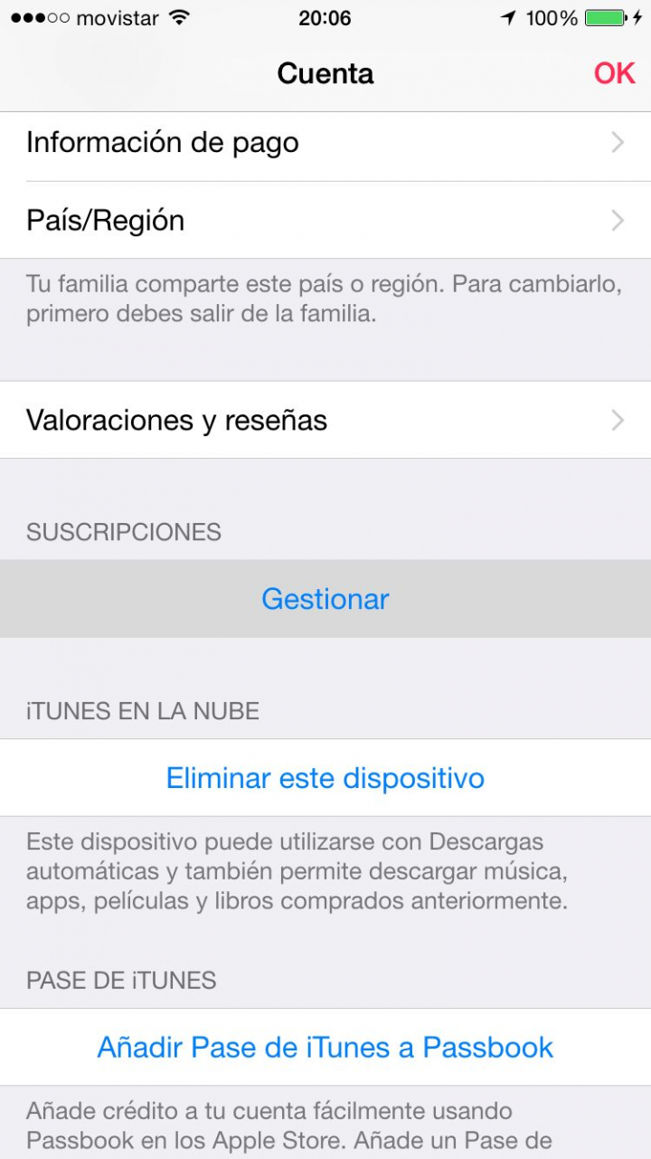 A continuación, hay que seleccionar Suscripciones. Seleccionamos la de Apple Music.