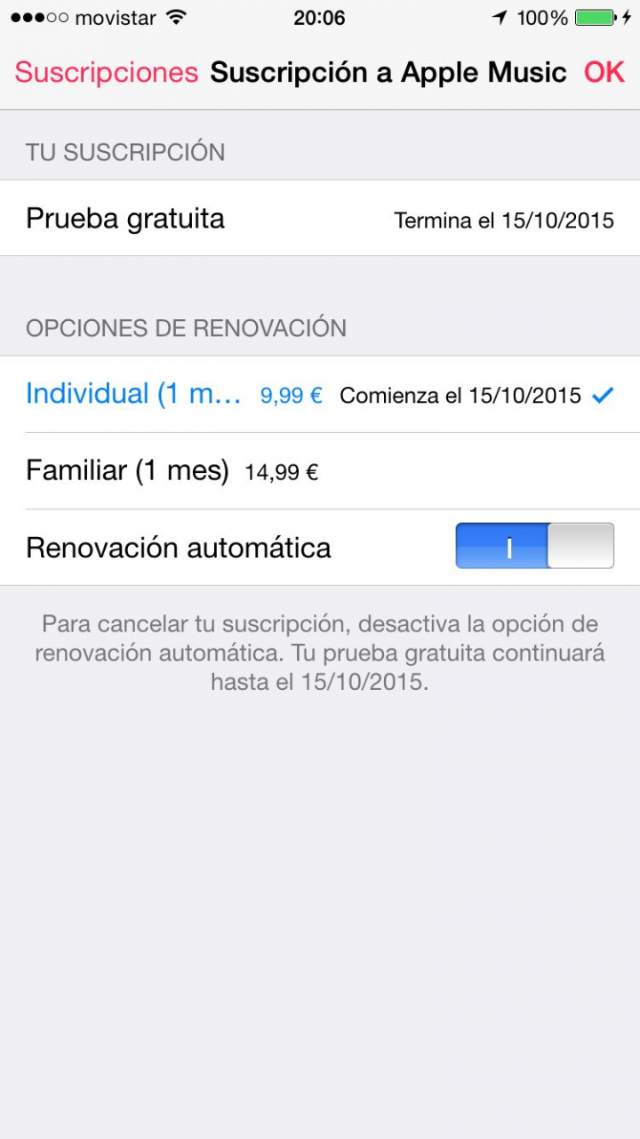 Si en algún momento decides continuar con Apple Music, siempre puedes realizar los mismos pasos y activar la renovación automática.