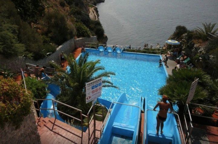 El Toboggan es una de las muchas atracciones acuáticas de Citta del Mare, que se autodenomina "el resort de vacaciones más grande de Sicilia". Este refugio mediterráneo cuenta con 800 habitaciones en un exuberante parque natural en la costa, con impresionantes vistas del mar y acantilados a su alrededor. Hay desde restaurantes a centros de salud y, por supuesto, pizza italiana. Pero seguramente te querrás quedar subiendo y bajando todo el día por el acantilado sin que nadie te dé la lata, gracias.