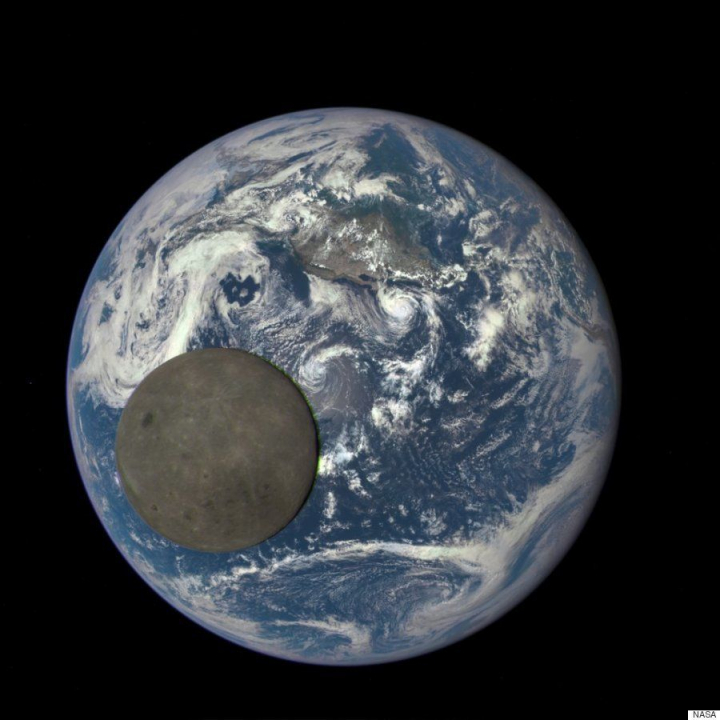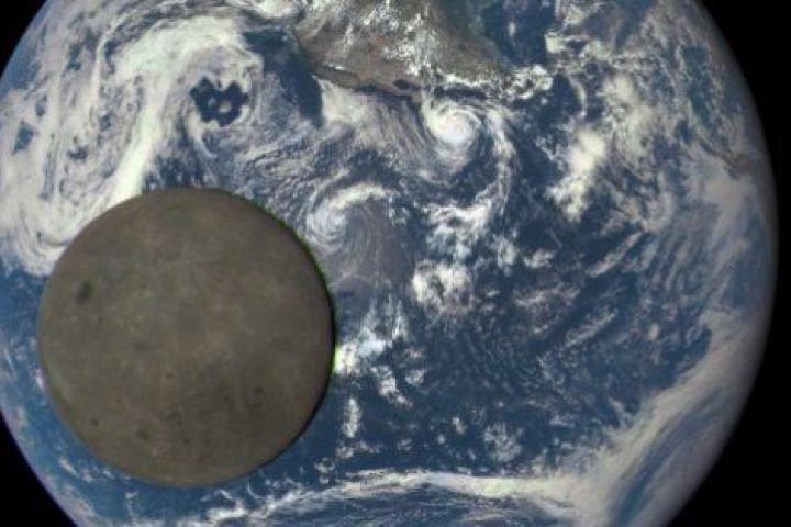 La imagen fue tomada el mes pasado desde el satélite Deep Space Climate Observatory (DSCOVR). Su cámara EPIC (Earth Polychromatic Imaging Camera) inmortalizó la Luna pasando por delante de la Tierra.