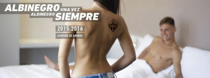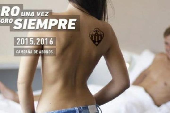 El equipo de fútbol local puso en marcha hace pocos días una campaña para la venta de abonos de la temporada 2015-2016. Una de las imágenes que componen esta estrategia publicitaria muestra a una joven de pie, con la espalda desnuda y el escudo del equipo tatuado en el lado derecho, mientras es observada desde la cama por otro joven.