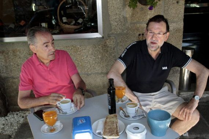 Mariano Rajoy, de desayuno y caminata con el marido de Ana Pastor, José Benito Suárez.