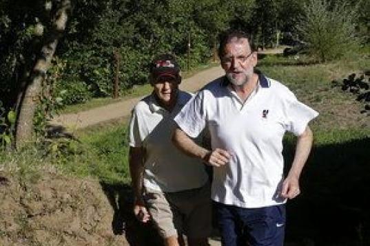 Mariano Rajoy se ha sentado en una mesa de la terraza y, después de secarse el sudor, ha empezado una animosa charla, con la compañía además de José Benito Suárez, presidente de la Autoridad Portuaria de Marín y marido de la ministra de Fomento, Ana Pastor, quien, al igual que ayer, ha acompañado al jefe del Ejecutivo en esta aventura a pie.