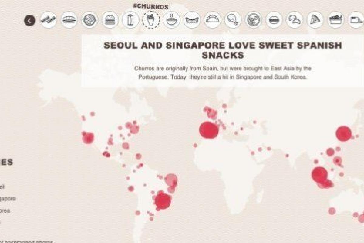 Photoworld ha reunido y utilizado la información de 100.000 fotografías publicadas por los usuarios en Instagram —entre el 10 y 18 de marzo del 2015— que incluían en su descripción hashtags según el tipo de comida (#bacon, #churros, #pizza, #sushi, etc.). La información se ha dividido en cuatro: comida europea, Sudamericana, Asiática y Norteamericana. Estas, a su vez, en los platos más comunes de cada zona.