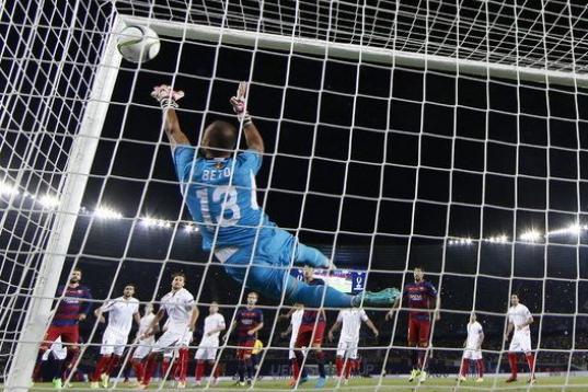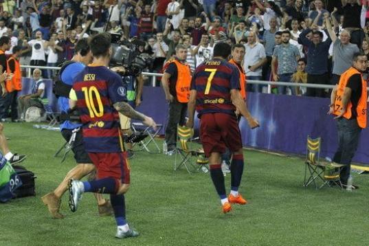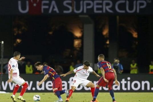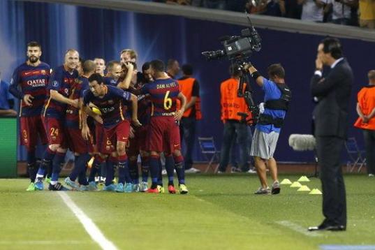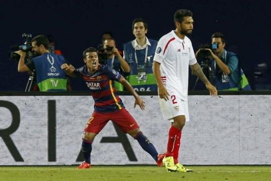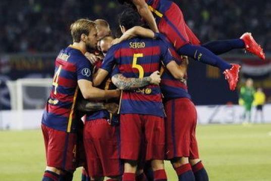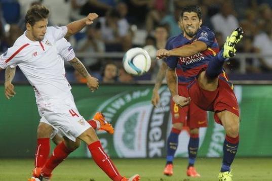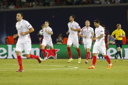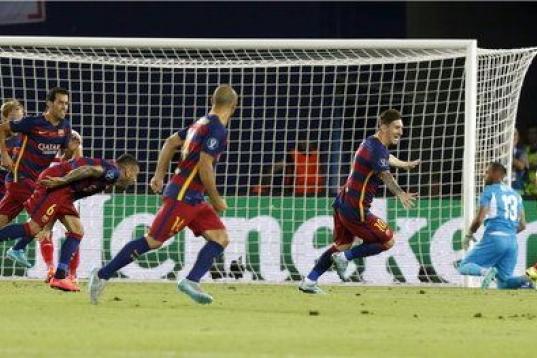 El Barcelona se ha proclamado campeón de la Supercopa de Europa al imponerse por 5-4 al Sevilla (Messi (2), Rafinha, Suárez y Pedro para el Barça y Banega, Reyes, Gameiro y Konoplyanka para el Sevilla).