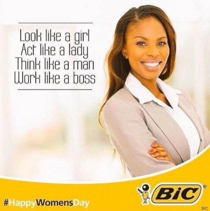 "Sé femenina, actúa como una mujer, piensa como un hombre, trabaja como un jefe", es el polémico mensaje por el que la empresa francesa Bic se ha visto obligada a pedir perdón en Sudáfrica después de difundirlo en su perfil oficial de Facebook el Día de la Mujer.