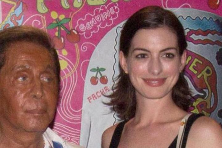 La actriz de El diablo viste de Prada, El caballero oscuro: La leyenda renace o Princesa por sorpresa mantiene desde hace años una estrecha amistad con el creador italiano, a quien ha acompañado en la inauguración de muchas de sus colecciones a lo largo y ancho del mundo, y también durante la presentación de su libro En la mesa del emperador. De hecho, el modisto fue el encargado de diseñar su vestido de novia hace tres años para su enlace con Adam Shulman.
