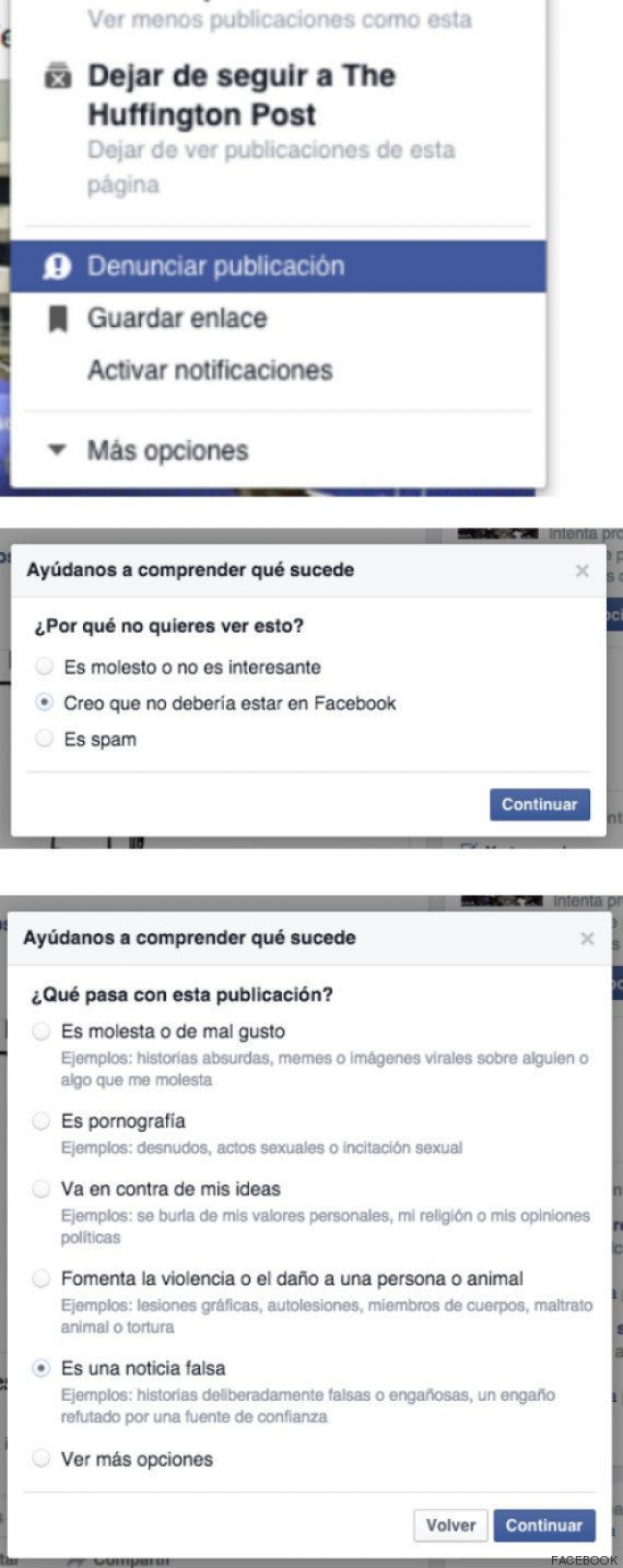 De ahí que Facebook quiera acabar de una vez por todas con los bulos y las mentiras en sus dominios, y para ello ha implementado una opción con la que los usuarios puedan marcar como falsa una historia (y también denunciar que una publicación tiene contenido violento o sexual).