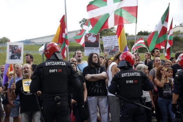 En la movilización, en la que se lucieron banderas republicanas, ikurriñas y pancartas con lemas como 2016 capital de la tortura o a favor de la República, tomaron parte, entre otros, representantes de EH Bildu como Xabi Soto o el juntero en Gipuzkoa Jon Albizu, así como la edil donostiarra de Irabazi Amaia Martin y Rosa García de la plataforma Stop Desahucios.