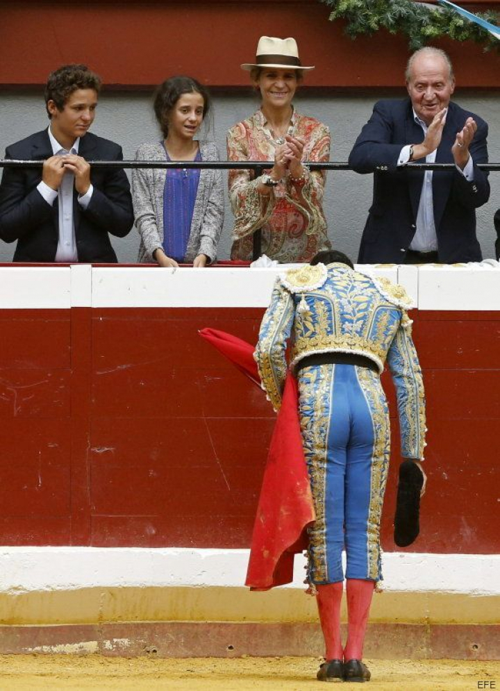 Don Juan Carlos acudió al coso junto a su hija, la infanta Elena, y los hijos de esta, Felipe Juan Froilán y Victoria Federica. Todos ocuparon uno de los reservados del callejón de la plaza donostiarra, la cual registró dos tercios de su aforo cubiertos, alrededor de unos 6.000 espectadores. El rey señaló que la fiesta de los toros es "un activo de España que tenemos que apoyar". En declaraciones a Televisión Española, reconoció que era la primera vez que asistía a una corrida de toros en la capital donostiarra, y la primera también en una plaza cubierta, motivo por el que le hacía especial ilusión compartir ese momento "con su hija y dos de sus nietos", quienes, ha añadido: "apoyamos siempre la fiesta nacional".