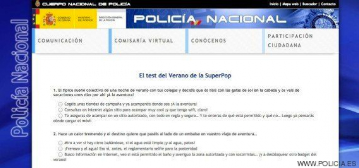 "¿Superarás el verano sin problemas?", es la pregunta con la que la Policía ha puesto en marcha en las redes sociales "El test del verano de la Superpop", un cuestionario que pone a prueba los conocimientos del usuario a la hora de enfrentarse a situaciones típicas del periodo estival.